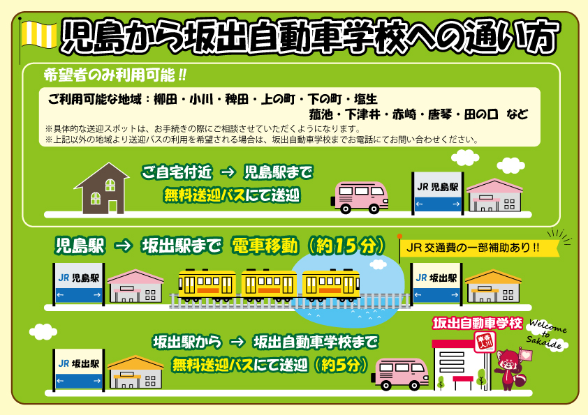 岡山の方から坂出自動車学校に通われるお客様向けに坂出までお越しいただかなくても