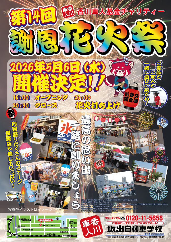 第14回 香川車人基金チャリティー 交通安全祈願謝恩花火祭の開催が決定いたしました‼