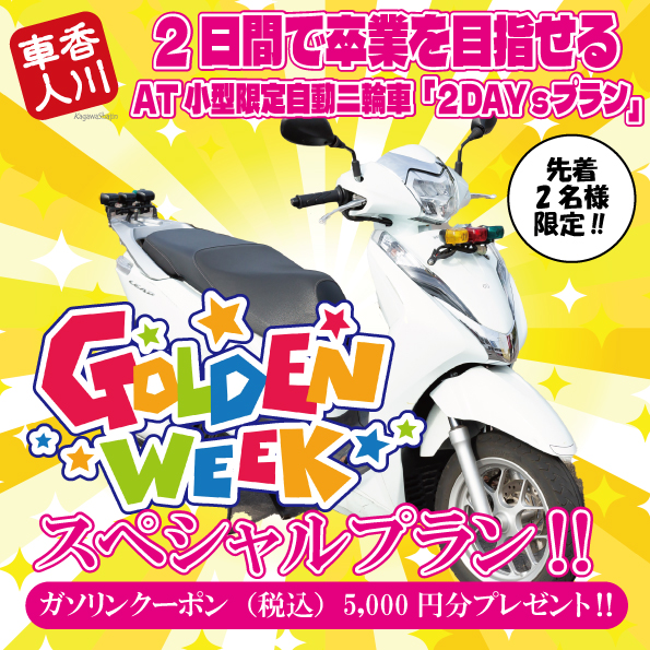 「5月2日(土)・5月3日(日)」の2日間で教習を受講されるお客様限定‼