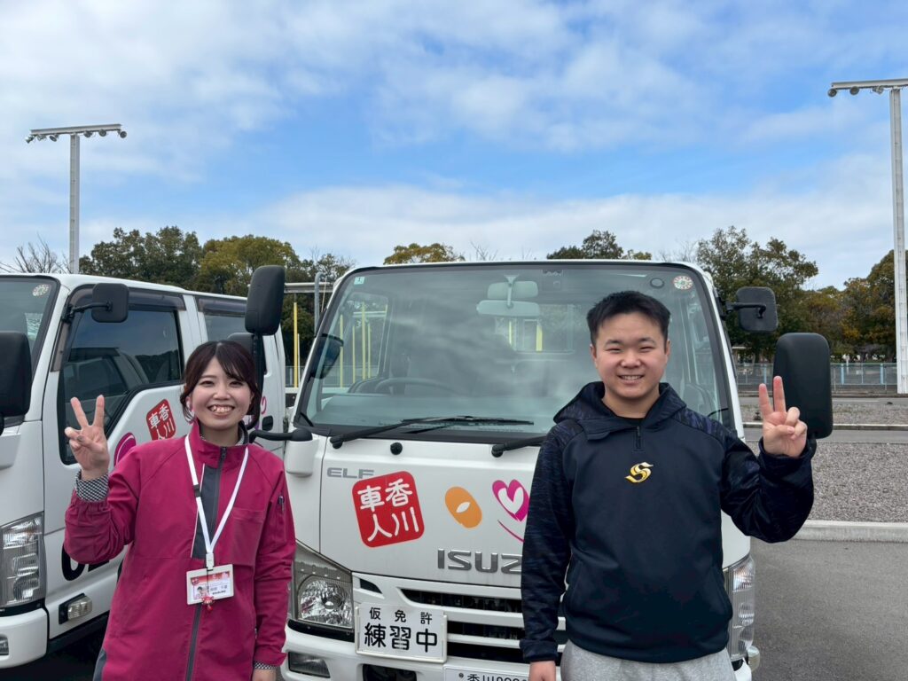 普通車から準中型に乗り換えたときに初めは、運転する際のスピード感や高さの感覚がつかめなくて大変でした。今は少しずつ慣れてきて準中型の方がミラーも多いし目線も高いので周囲も見やすく運転しやすいなと思いました。